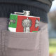 Well made flask, a little better than I had expected. Flask came in clear plastic box which gave it a nice presentation when I took it out of the zazzle packaging. Image is not printed on flask but on sticker. Don't know how this will hold up I haven't used it yet. This would make a Great gift! I plan to purchase more for friends! Cheers. I thought a little brighter than computer. Very crisp, writing wasn't