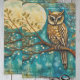 A majestic owl on a tree branch and a full moon over a distressed blue background. Use for gift wrapping or for paper craft projects.