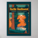 Vintage artwork advertising the Pacific Northwest. Minimal colors.