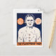This postcard is a reproduction of a vintage poster advertising the Pain Proof Man, "world famous oddity," as part of the "Believe It or Not" troupe promoted by Ripley. It shows the man stuck with nails, safety pins, and buttons.