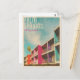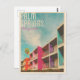 EXCLUSIVE to Vintage republic: Retro style Palm Springs Hotel travel poster design featuring coulorful balconies on a mid-century modern hotel ( the Suguaro Hotel) against a blue sky and palm trees.