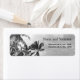 Vintage black and white photograph of a tropical beach with palm trees stretching out over the sea.