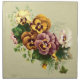 Lovely yellow and purple pansies flower bouquet with green ivy and fern fronds. Cleaned up from a vintage illustration from the Boston Public Library public domain images collection.