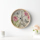 Add a French touch to your home with this chic wall clock with Paris vintage art featuring an old illustration of the Eiffel Tower, pink peonies and butterflies.