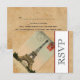 These lovely francophile rsvp cards can be customized to suit your specific needs. Featuring a vintage postcard of the Eiffel Tower against a parchment background image.