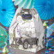 Beautiful vintage art inspired by Paris and featuring a retro car, the Eiffel Tower, vintage stamps, retro phone and lavender, all in two tones.