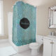 Elevate the brightness of teal in your bath. Even better is that the teal is covered with vintage-look postmarks "Paris". A chalkboard medallion, edged in silver metallic dots, offers a place for your name in a flowing teal/turquoise script font. Add a touch of sophistication to the bed bath area in your home decor.