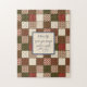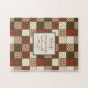 Personalize this vintage style patchwork patterned puzzle with your own text for a unique gift. Created in shades of dark reds, cream and browns for a rustic look with faux zig-zag stitch details. Sweet item for quilters, seamstresses or anyone with a taste for good puzzle challenges.