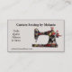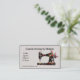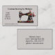 Fun distinctive business card for sewing and quilting artisans with cutely detailed graphics of a vintage sewing machine patterned in faux stitched patchwork. Customize all text in the simple online Zazzle form.
