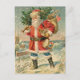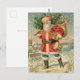 Send this postcard sporting a festive vintage image of a patriotic Santa carrying a tree and his sack of toys as an economical and easy alternative to the traditional Christmas card. Just write your personal greeting on the back, address it (no envelopes to lick), add a stamp, and send--easy peasy. Perfect for when you want to send a brief but heartfelt greeting. The divider on the back is faux gold. Merry Christmas!