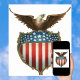 Vintage illustration proud patriotic Fourth of July holiday design featuring a bald eagle and a shield with the American Flag, the stars and stripes. Show your patriotism and pride for the United States of America with symbols of freedom and our great nation. Perfect for celebrating our heroes on Veteran's Day, Memorial Day or Independence Day the 4th of July.