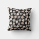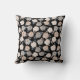 Features a repeating pattern of vintage style rose flowers arranged into a repeated pattern. Black background, grey, sepia, off white, cream, blue grey color pallette. pattern printed on fabric and made into this one of a kind designer cushion/pillow...