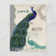 There is a touch of whimsy and fun in this design featuring two vintage peacocks, one in full intense colors of cobalt, peacock,and aqua blue with purple and green, the other is a pen and ink drawing in peacock blue. You have your choice of background colors, shown here in peacock or teal blue. During customization, simply select "edit" and in the drop down menu select background. You can pick any color on the chart or put in the hex# of any color you would like (in the box at the bottom right corner). We would also be delighted to help your out if you would like. On the reverse side is your Wedding invitation information. YOU MIGHT ALSO ENJOY:All items available in any color you desire, just email us and we'll be happy to help! COMPLETE COLLECTION AT: