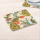Vintage Peacock and poppies illustrations Square Paper Coaster