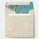 This elegant and sophisticated invitation envelope blends the best of tradition and the freshness of the contemporary. Mixing Vintage art elements and contemporary watercolor art work hand painted by Audrey Jeanne Roberts gives a beautiful and timeless quality to this invitation. A stately Peacock rest upon elegant etched swirls and looking towards a very subtle hand painted damask with peacock blue behind it. Also available in a custom color version where you can put any color where the blue is now. Every product shown can be created in any color you wish. YOU MIGHT ALSO ENJOY: WEDDING INVITATIONS: