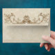 This elegant and sophisticated invitation envelope blends the best of tradition and the freshness of the contemporary. Mixing Vintage art elements and contemporary watercolor art work hand painted by Audrey Jeanne Roberts gives a beautiful and timeless quality to this invitation. A stately Peacock rest upon elegant etched swirls and looking towards a very subtle hand painted damask with peacock blue behind it. Also available in a custom color version where you can put any color where the blue is now. Every product shown can be created in any color you wish. YOU MIGHT ALSO ENJOY: WEDDING INVITATIONS:
