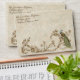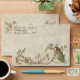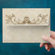 A stately Peacock rest upon elegant etched swirls and looking towards a very subtle hand painted damask with peacock blue behind it. Mixing Vintage art elements and contemporary watercolor art work hand painted by Audrey Jeanne Roberts gives a beautiful and timeless quality to this invitation suite.