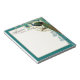 COLOR PALETTE: tan, teal & aqua blue. USES: A bride can use this for her wedding correspondence as there is a complete wedding ensemble to match. It would make a perfect bridal shower gift for her as well, you could customize it for her with her new married name or the couple's names. DESIGN COLLECTION: This modern & sophisticated note pad has a rich and elegant contemporary vintage appeal. Created with a selection of Vintage art elements that have been compiled into a fresh new design by Audrey Jeanne Roberts. Printer's etchings and ornaments give a beautiful and timeless quality to this delicate background. A regal peacock sit abreast a a branch surrounded by modern hand painted peacock feathers. The etched letterpress style printer's ornaments make up the background in several different colors. The background border color is complete customizable to match your favorite color. PERSONALIZE IT: customize it with your name in the easy to use template field.