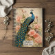 An elegant vintage-style illustration featuring a majestic peacock surrounded by soft pastel flowers and delicate botanical details. The muted antique background and rich feather colors create a timeless decorative composition inspired by classic botanical art.
