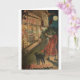 Victorian / Vintage Halloween greeting card. Sinister looking witch with her black cat looking in a window where children are about to bob for apples! Hallowe'en!