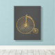 This stylish canvas features a vintage old fashioned penny farthing bicycle in faux gold glitter on a charcoal gray background.