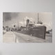 BLACK & WHITE POSTER designed from A VINTAGE PHOTO IMAGE OF THE PERCIVAL ROBERTS JR ore boat in the SAULT STE. MARIE LOCKS. Wonderful diagonal composition image of this ore freighter giving perspective on the sheer size & length!