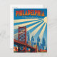 Celebrate the charm of Philadelphia with this retro‑style postcard featuring the iconic Benjamin Franklin Bridge, bold city skyline, and vibrant sunburst design – a perfect keepsake for collectors, travelers, and lovers of vintage city art.