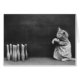 A vintage photograph of a kitten wearing a dress who's getting ready to throw her bowling ball at ten bowling pins in hopes of getting a strike. American photographer Harry Whittier Frees (1879-1953) was famous for dressing animals in clothing and posing them in human situations then photographing them. Some of his photos had captions, but most did not. This card is blank inside for your own message.