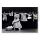 A vintage photograph of a kitten in a dress who has done the laundry and is hanging it out to dry on a clothes line. American photographer Harry Whittier Frees (1879-1953) was famous for dressing animals in clothing and posing them in human situations then photographing them. Some of his photos had captions, but most did not. This card is blank inside for your own message.