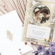This vintage-style wedding invitation beautifully combines a personal touch with elegant design. The front features a customizable photo framed by an intricate laurel wreath and detailed ornamental motifs in soft gold. The classic and timeless border adds a luxurious feel to the invitation, while the couple’s names are showcased in elegant typography. The back continues with a minimalist monogram flanked by matching flourishes. Perfect for traditional or vintage-themed weddings, this invitation blends personal charm with refined artistry. The palette of gold and cream adds a touch of sophistication, making it an ideal choice for a formal yet personalized celebration.
