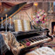 Beautiful Vintage Piano, notice the intricate details of the keys and surrounding decor.