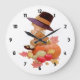 Vintage Pilgrim Boy Praying on Pumpkin Large Clock