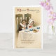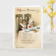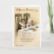 Vintage picture of two pilgrim children praying at their Thanksgiving dinner, is featured on this Thanksgiving greeting card. Front of card reads, "A Blessed Thanksgiving. With thankful and contended heart". Inside of card reads,"We in America have been very blessed! Wishing you and your family a Thanksgiving of Joy and Happiness". A sweet card to send to family and friends for the Holiday!