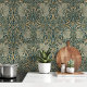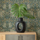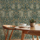 Enhance your home with the timeless elegance of this vintage wallpaper, inspired by the exquisite designs of William Morris. The intricate pattern features majestic pimpernel flowers and delicate blossoms intertwined with lush green leaves and vines, set against a rich, deep teal background. This sophisticated design showcases a harmonious blend of soft pastel greens, pale yellows, and muted gold tones, bringing a touch of classic sophistication and natural beauty to any room. Perfect for creating a serene and elegant atmosphere, this wallpaper seamlessly combines traditional charm with contemporary style.