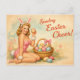 The softly illustrated eggs add a playful seasonal touch while maintaining the look of an authentic vintage postcard. Ideal for pairing with retro Easter illustrations or pin-up Easter artwork for a complete postcard set.