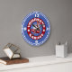 This garage clock template features a digitally enhanced image of a vintage pin-up art girl riding on a rocket. You can easily personalize the text and replace the center graphic (Image 1) with your own graphic, photo or logo.