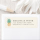 Our island chic return address labels feature a warm off white background with charcoal gray lettering and a pineapple illustration in golden yellow and vibrant tropical green. Designed to coordinate with our Vintage Pineapple wedding and event invitations.