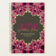 Elegant and unique fractal lace design Spiral bound personalized wedding planner in gorgeous pink on black with golden lace trims. Beautiful script customizable lettering on olive green background. Very pretty design.