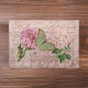 This beautiful design features two gorgeous chrysanthemums - one pink and the other pink and white - with a pale green luna moth, set against a background of distressed handwriting and the glimmering of an old iron gate. This romantic design is great for including in mother's day gift wrapping, birthdays, anniversaries, showers, and weddings, or else incorporating in a DIY decoupage project.