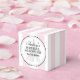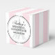 A charming Paris-themed wedding bridal shower favor box featuring a vintage Eiffel Tower illustration on a round label, paired with the bride's name and shower date. The box is wrapped in a classic pink and white vertical stripe pattern. All text is fully customizable. A delightful way to package treats and small favors for a Parisian-themed bridal shower, bridal luncheon, or French-inspired wedding celebration.