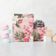 This classic pink vintage wrapping paper features a beautiful floral pattern of white lilies adorned with red berries and leafy greenery against a pink background.