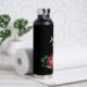 Vintage pink flower custom name black water bottle