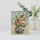 Customizable Vintage postcard with pink flowers in blue vase illustration.