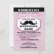 Throw a vintage mustache bash starting with this unique invitation. Pink-toned faux fabric serves as the background to show off a frame containing a vintage moustache. Please be sure to PROOFREAD your changes as there is a lot of customizable text. Available with matching products.