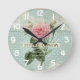 Vintage Pink Roses and French Writing Round Clock