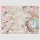 Vintage Pink Roses Old Letter Clock Decoupage Tissue Paper
