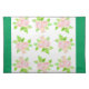 A very pretty place mat, with a pattern of old-fashioned pink roses and deep green side panels, from a watercolour painting by Judy Adamson.
