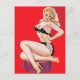 Vintage Pinup Beautiful Blond on Red Background Postcard