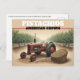 Vintage pistachio orchard and tractor postcard with a bin of pistachios.