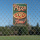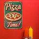 Channeling classic diner vibes, this vintage-style metal sign features a bold "Pizza Time!" headline in retro cursive, set against a distressed green backdrop. At the center, a delicious pepperoni pizza—complete with bubbling cheese and basil leaves—is illustrated in warm, mouthwatering tones. Aged edges and subtle wear marks give the sign an authentic, timeworn charm perfect for kitchen walls, pizza parlors, diners, or nostalgic home décor.